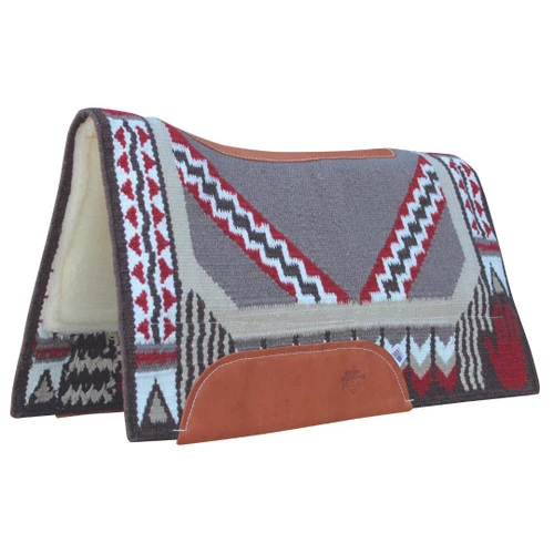 Good Medicine Comfort Fit SMx Air Ride Hand2Horse Pad features the Air Ride core that delivers superior protection for your horse’s back. Carefully contoured pad follows the shape of the horse’s back and has a leather reinforced spine and wither. The top of this handsome pad is a custom designed hand-woven New Zealand wool blanket in Hand to Horse pattern.