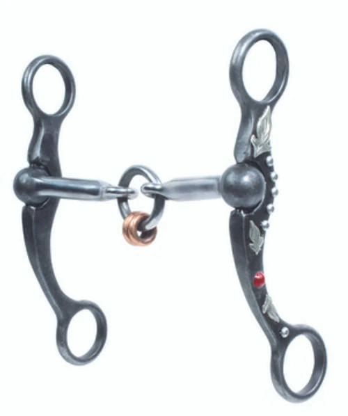 Red Feather Lifesaver bit has the unique lifesaver o-ring mouth piece. The ring center mouth piece adds targeted tongue pressure when needed to get the horse’s attention and achieve a quicker result. Professional’s Choice western bit is from the Colored Stones collection and features red stone decorations on the 6 inch shanks. Western leverage bit allows a small amount of rein pressure to achieve a result, using tongue, palate, and poll pressure. Western lifesaver bits are frequently chosen as an option for horses that are transitioning from a snaffle bit. This great looking bit has sweet iron to increase bit acceptance and create a wet mouth for your horse’s comfort. Don’t forget the curb chain! Mary’s Tack has a great selection in our section.