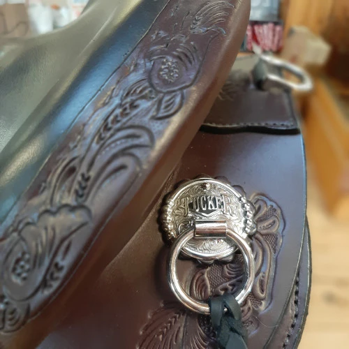 Tucker Horizon Outpost Endurance Saddle makes long distance trail riding as comfortable and enjoyable as possible for you and your horse. The Outpost incorporates smart technology to solve typical problems and is a beautiful, high quality saddle that’s made in the USA. It boasts elegant, tasteful tooling on the smooth. supple English bridle leather that resists moisture. Rich mahogany dye will not rub off or run. and the stainless steel hardware and decorative trim are reliable and durable. This Tucker Horizon Outpost Saddle is a 16.5 Wide.